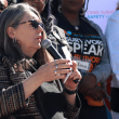 State Rep. Jen Longdon, a survivor of gun violence, joined the “Survivors Speak” event to demand better support and public funding for trauma recovery centers that offer therapy and social services.
