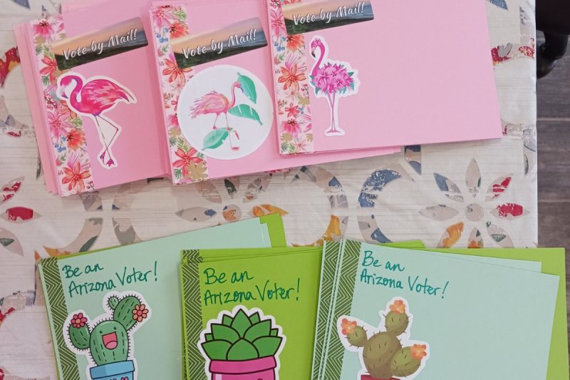 For people like Peg Adams of Mesa, it looks like writing and sending postcards to voters to encourage people to cast their ballots.
