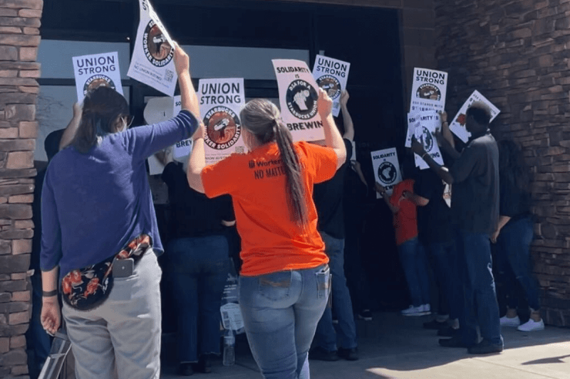 Labor advocates gathered outside of a Phoenix Starbucks last week to call for a fired worker to be reinstated.