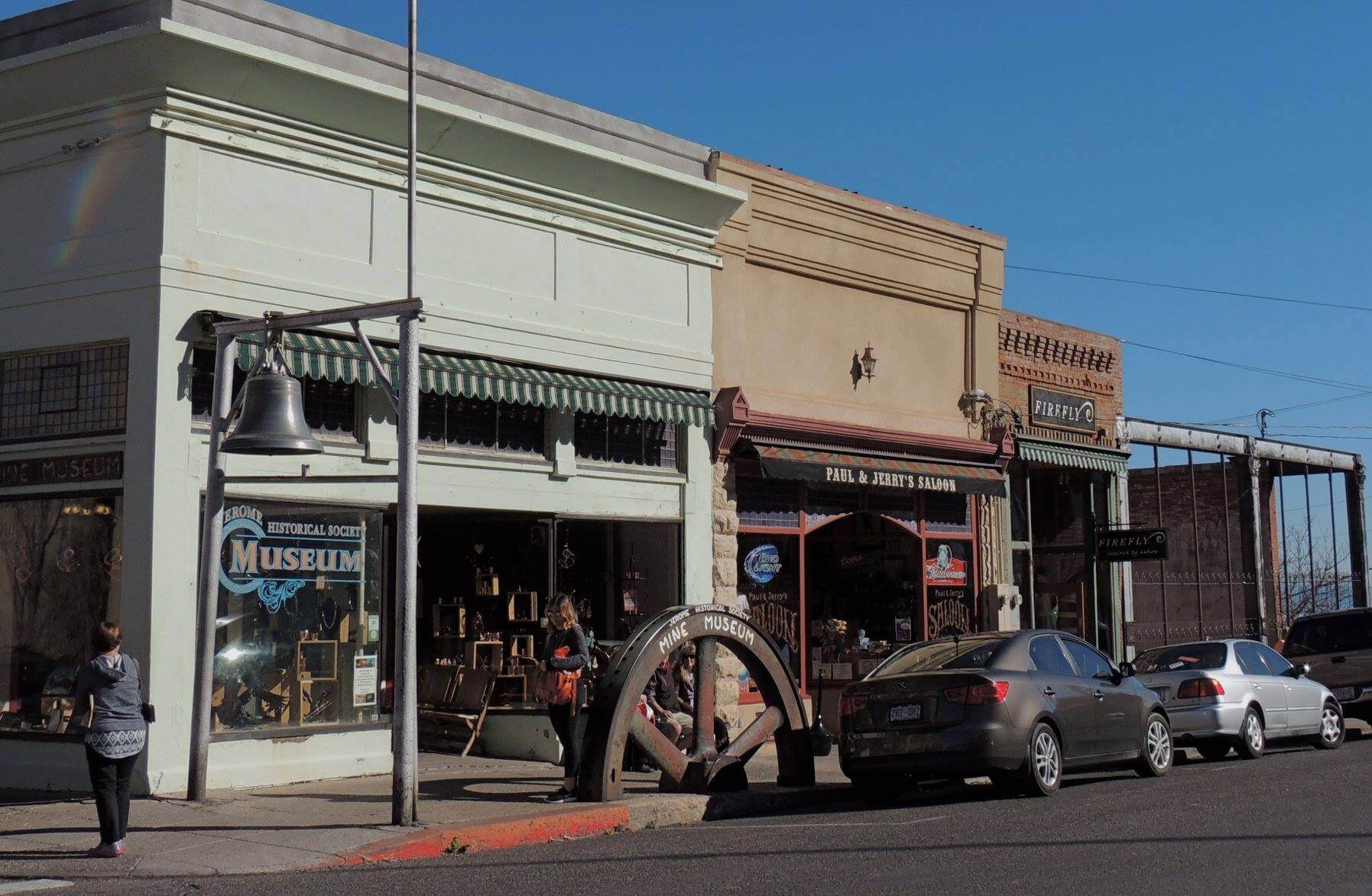 Jerome, with a population of about 450, was once home to one of Arizona’s largest copper mines and is now an artist hub. Tourists take in its scenic views and visit stores and bars along the winding mountain road that passes through it.