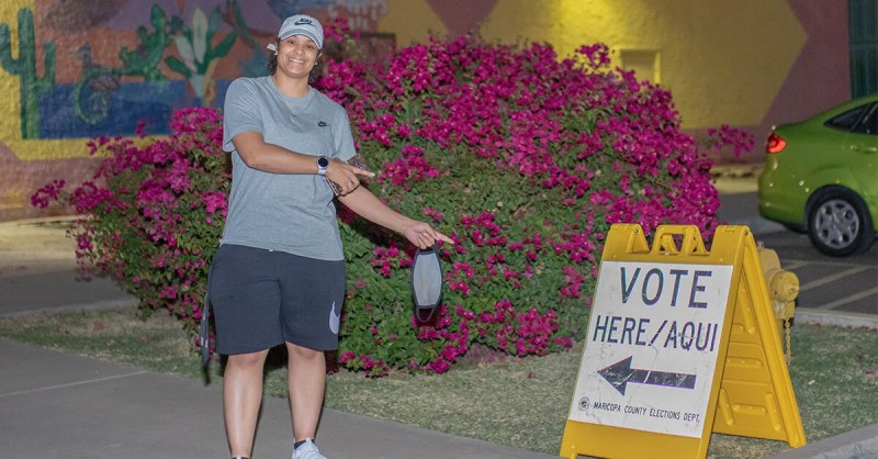 As she dropped her early ballot off at her polling place at the Mercado, in Guadalupe, Arizona, she shared the story of her parents and grandmother and how they taught her, “her vote was her strongest voice.”