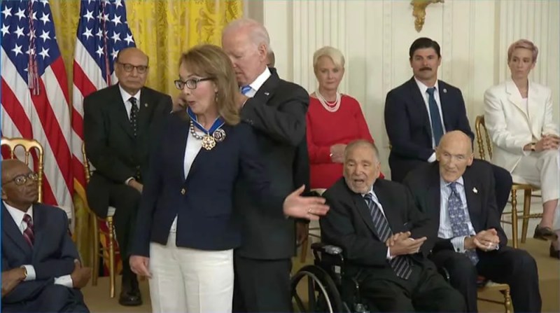 It was just one moment from a sometimes somber, sometimes jovial event when Biden honored 17 Americans, including the late Sen. John McCain and former Arizona Rep. Gabrielle Giffords, whom he called “the soul of our nation” from the worlds of art, athletics and public service.