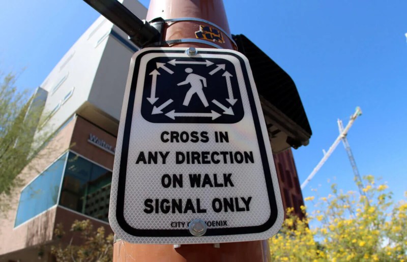 “The real reason is to improve the pedestrian experience in downtown,” said Cathy Hollow, a Tempe traffic engineer. “We just think it will give people options; they can cross any which way they want when the pedestrian signal’s on.”