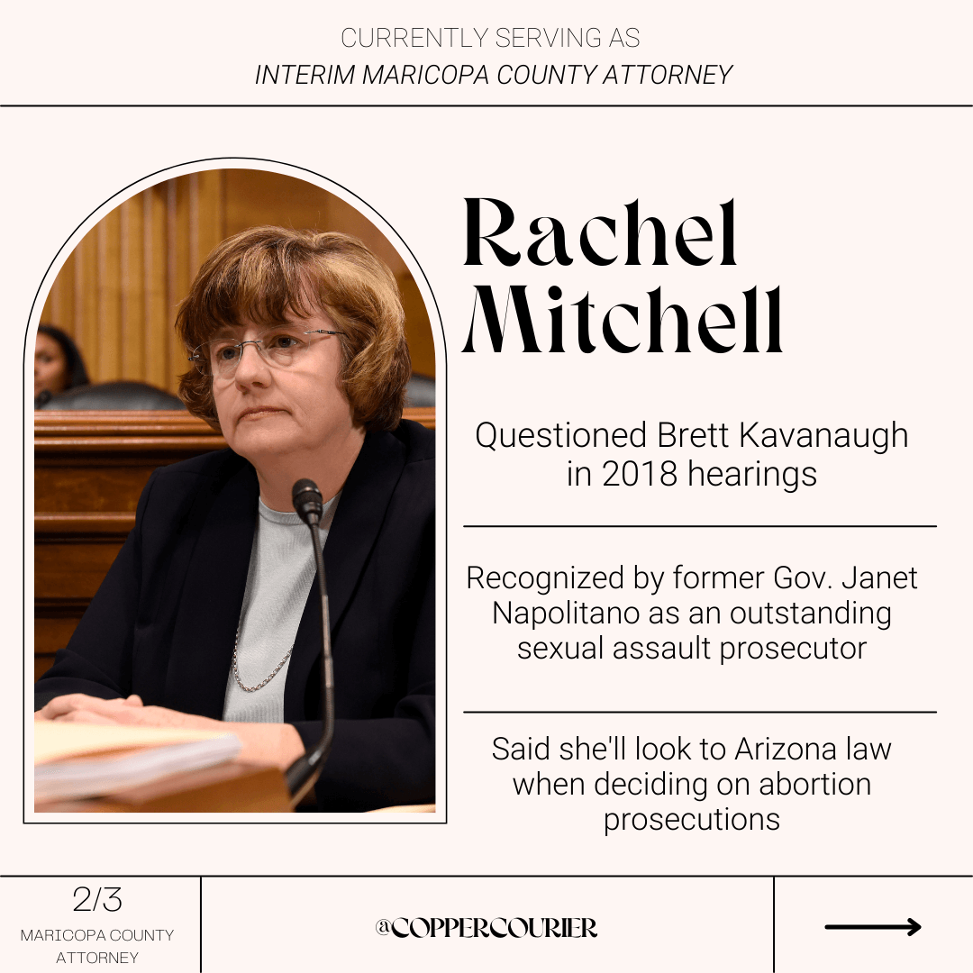 Rachel Mitchell, most known for her role in the Brett Kavanaugh confirmation hearings, was named as interim county attorney and will serve until early 2023 at minimum.