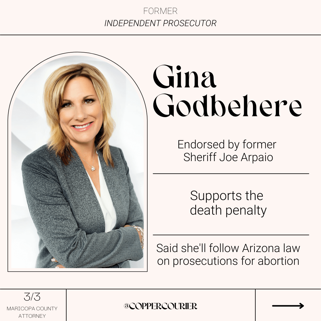 Godbehere is a former prosecutor for the city of Goodyear, and she worked in the Maricopa County Attorney’s Office for over two decades.