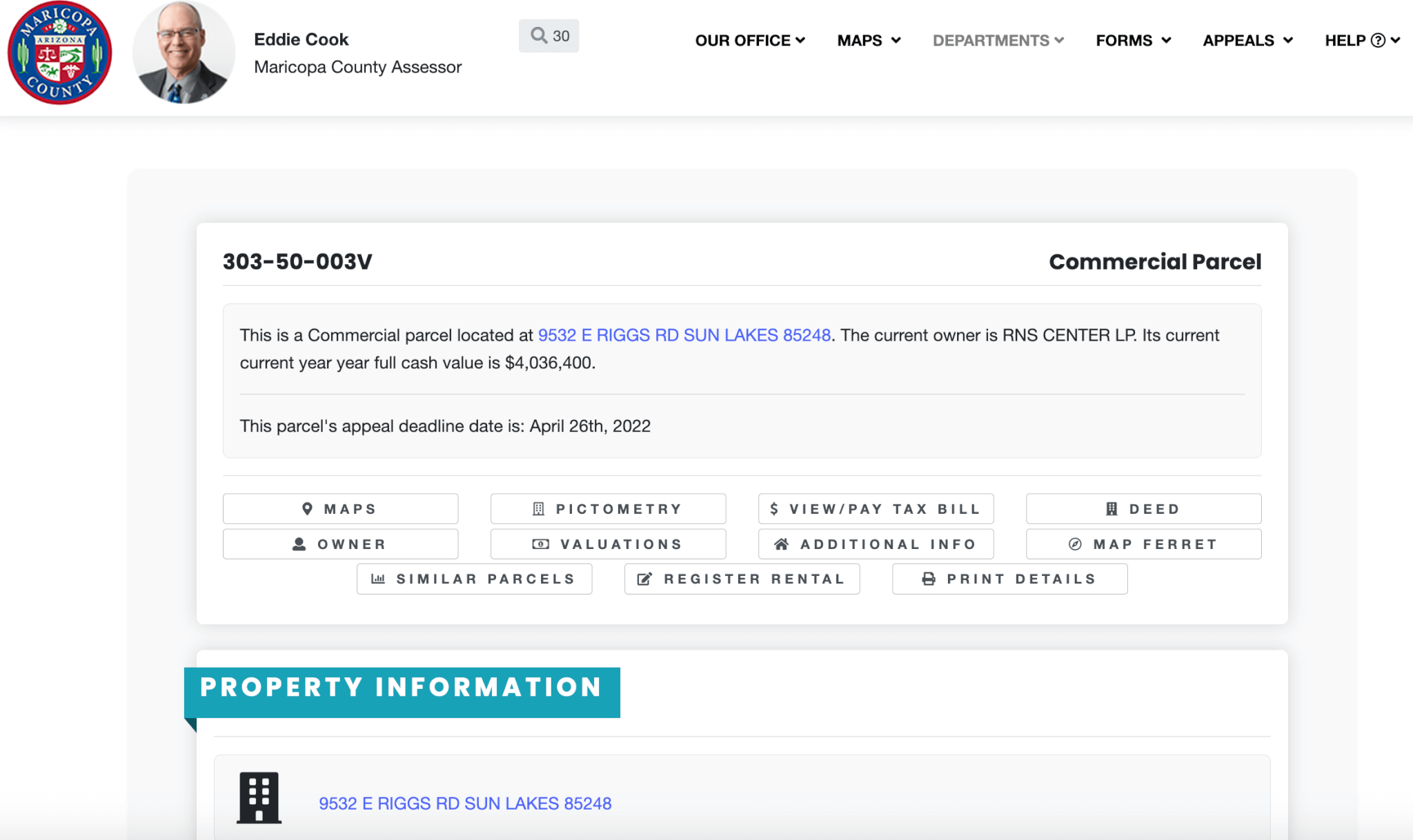 The elder Robson also appears to have additional interests in a dozen other residential and retail properties, a parcel of land, and a commercial property that are collectively valued at roughly $60 million. These properties are owned by RNS Center LP, a limited partnership company that is located at 9532 E. Riggs Road in Sun Lakes—the same address listed for the 25 companies Robson has chaired, according to his wife’s disclosure documents.