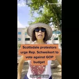 Scottsdale residents held an emergency protest after Senate Republicans advanced President Trump’s “One Big Beautiful Bill,” which includes $1 trillion in Medicaid cuts and $300 billion in SNAP cuts.